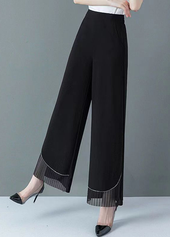 New Black Tulle Patchwork High Waist Straight Pants Spring