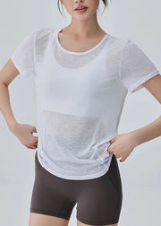 Cute White O-Neck Backless Short Sleeve Thin Yoga Tops