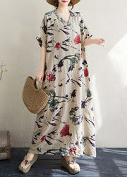 Italian Khaki Oversized Print Cotton Dresses Summer