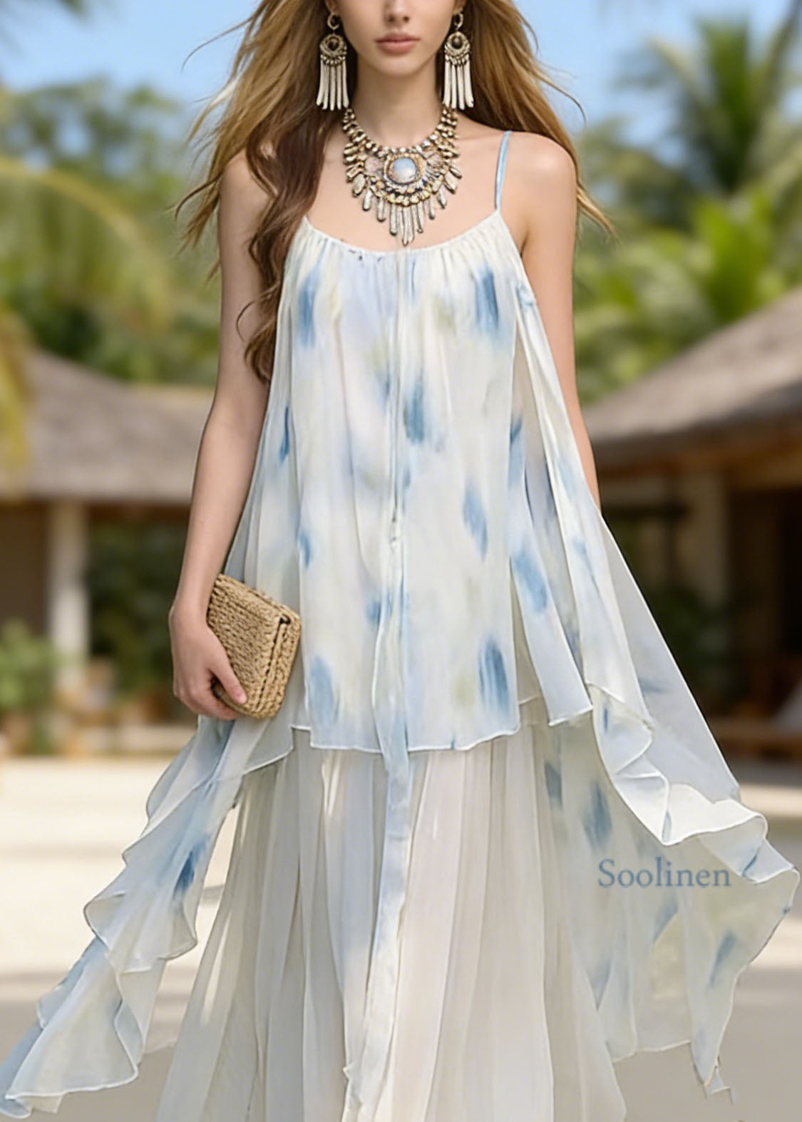 Fashion Asymmetrical Tie Dye Chiffon Spaghetti Strap Dress Summer