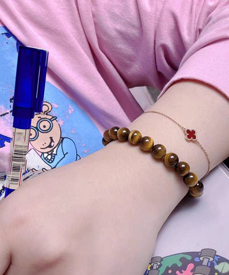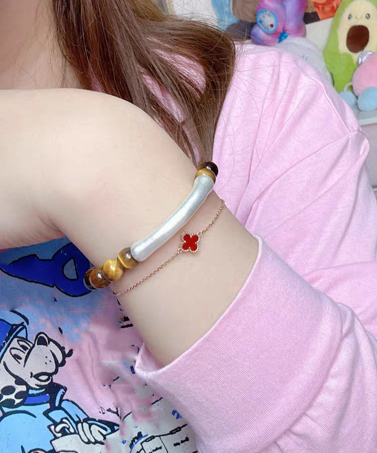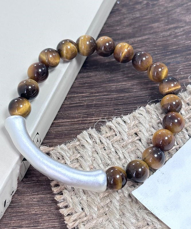 2026 Brown 999 Pure Silver Bend Pipe Patchwork Tiger's Eye Bracelet