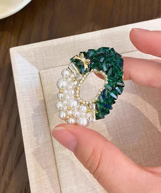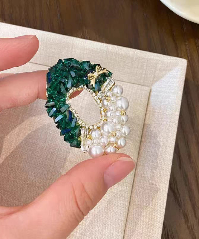 Beautiful Green Copper Zircon Crystal Pearl Brooches