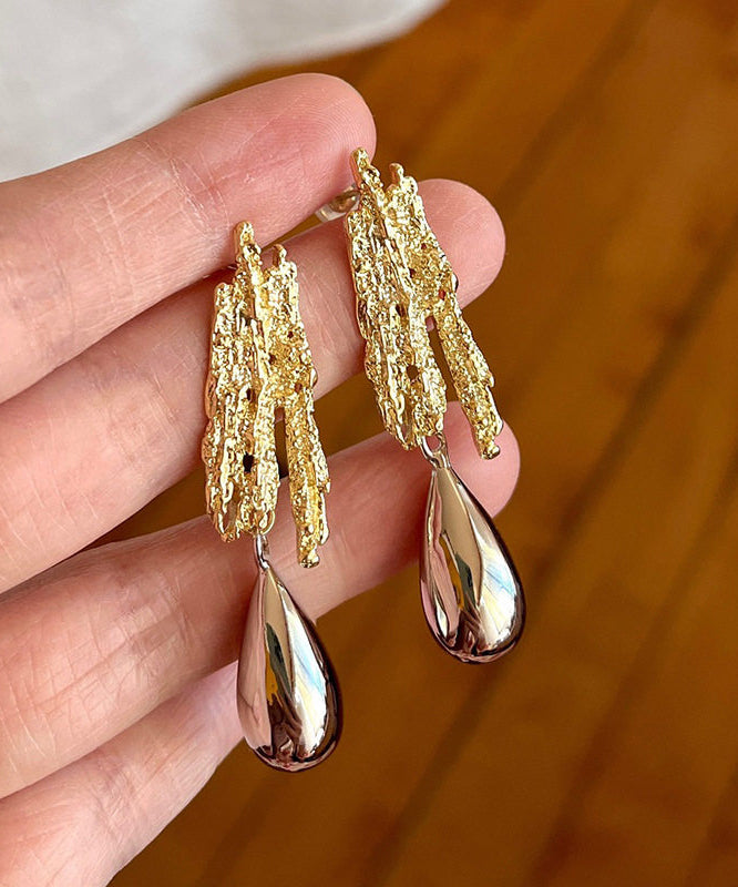 Fine Gold Copper Overgild Asymmetrical Water Droplet Gold Drop Earrings