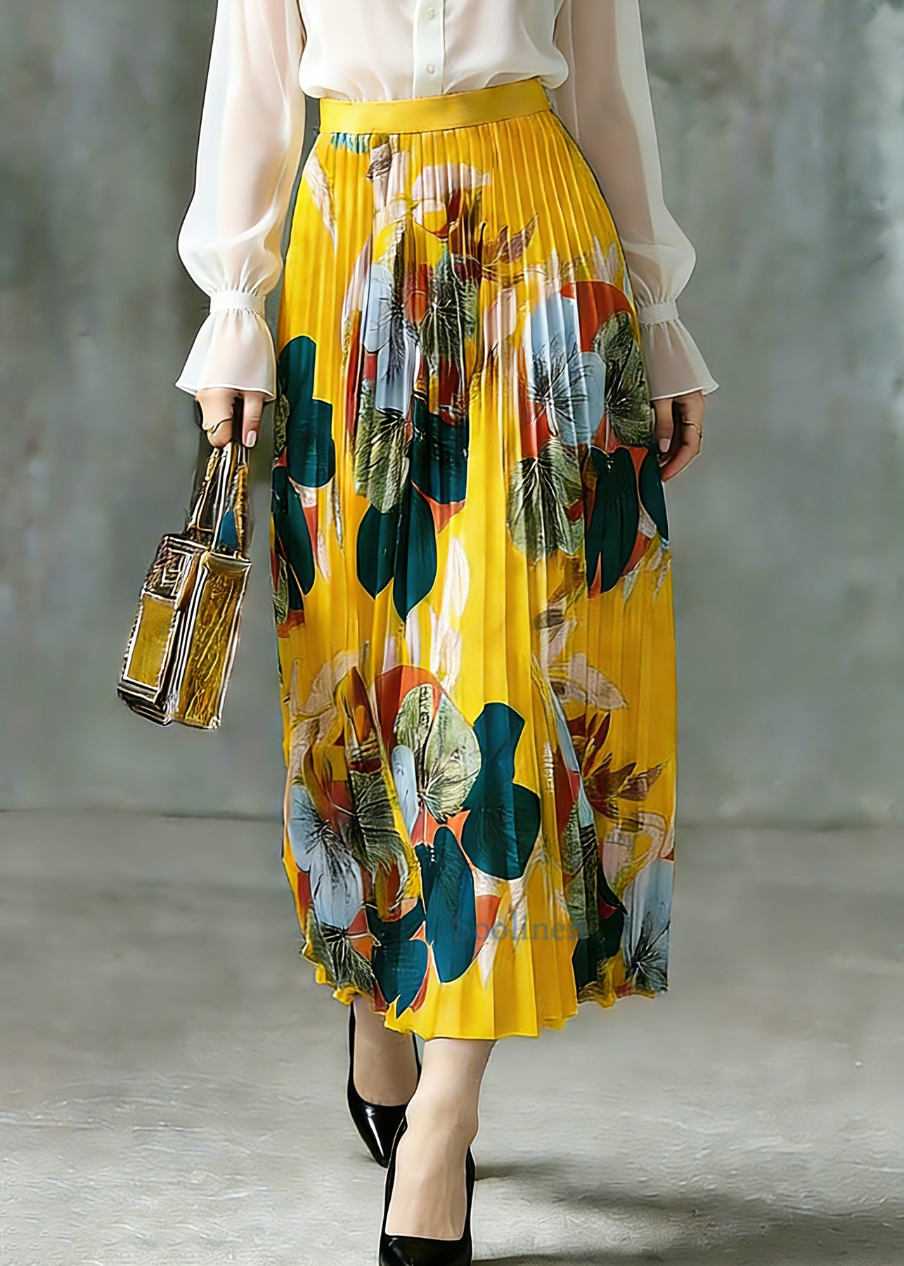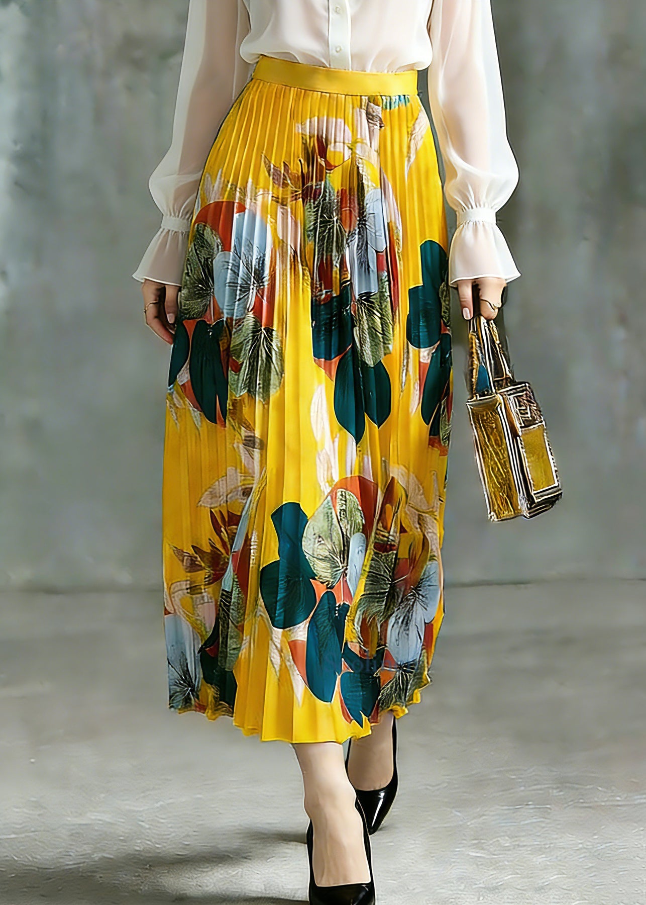 Boho Yellow Elastic Waist A Line Skirt Spring