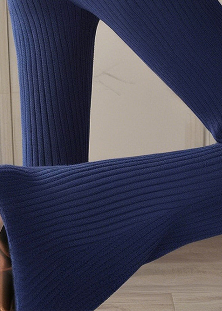 Silm Fit Navy High Elasticity Knit Bell-bottom Trousers Spring