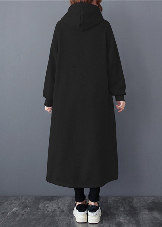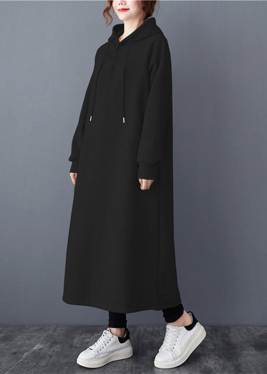 Casual Black Hooded Patchwork Warm Fleece Long Dresses Winter