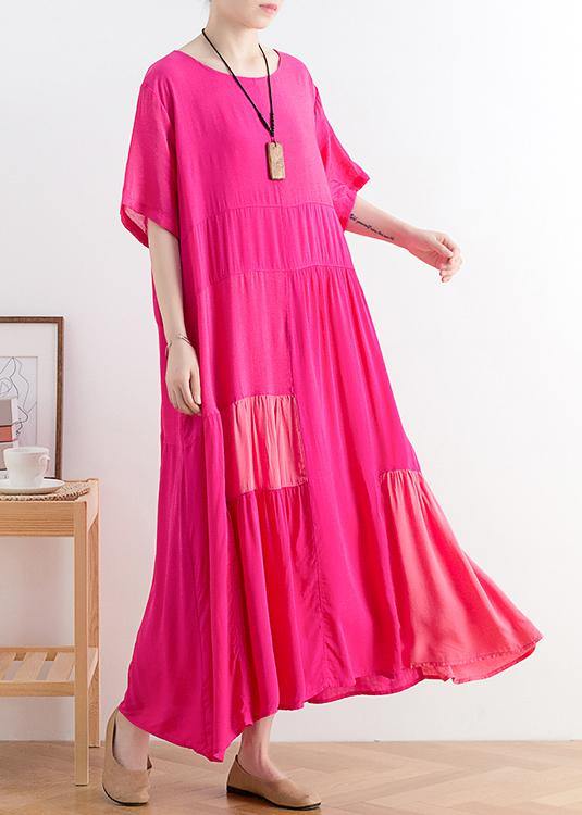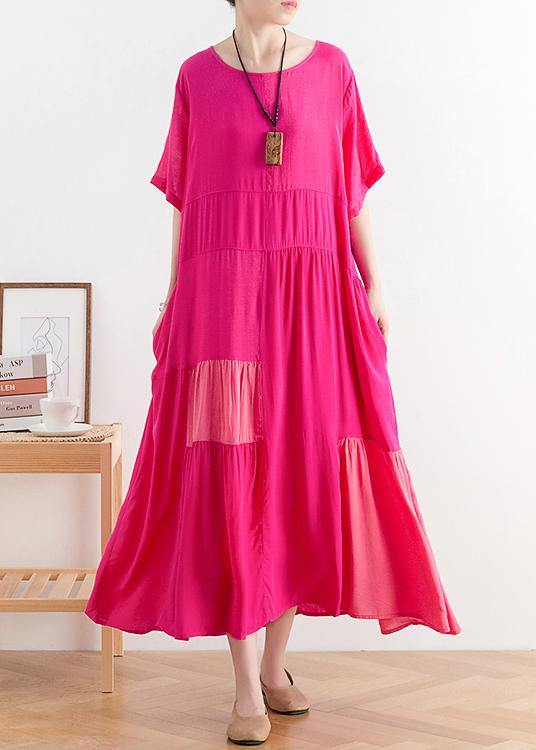 DIY rose cotton clothes Women o neck patchwork A Line Dress