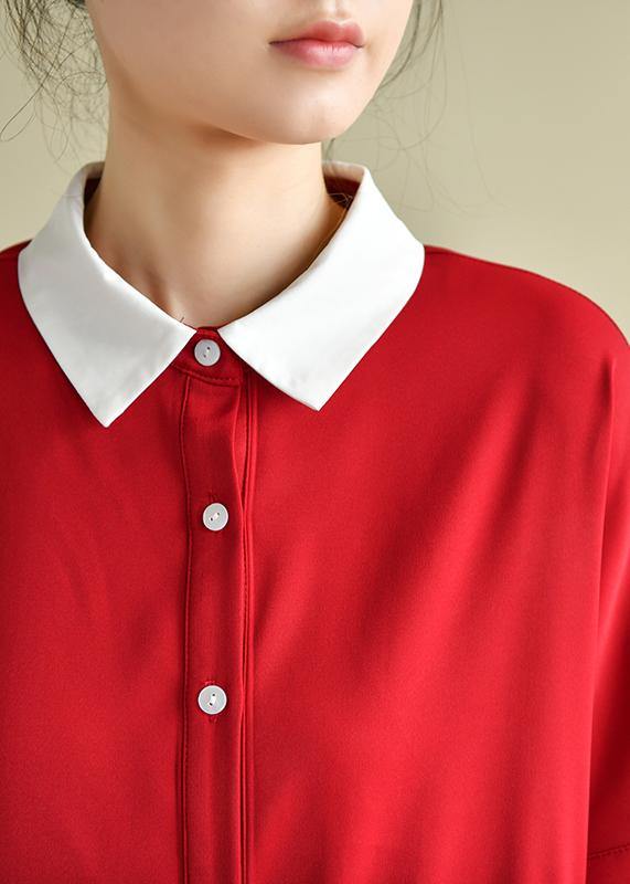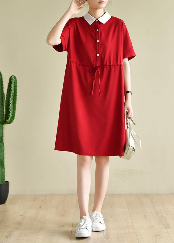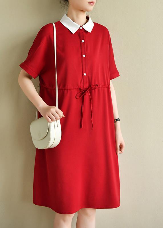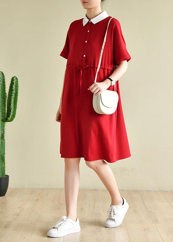 Unique lapel drawstring quilting dresses Neckline red Dress - SooLinen