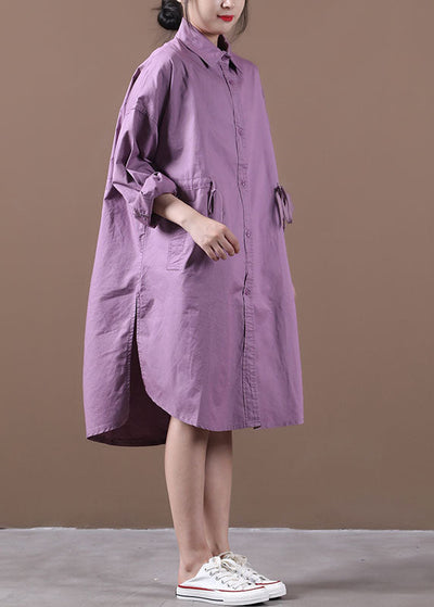 Casual Purple Peter Pan Collar Button Cotton Shirt Dresses Long Sleeve