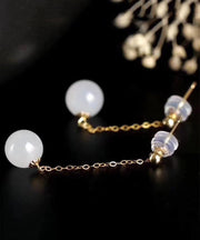 Classy White Sterling Silver Overgild Jade Drop Earrings
