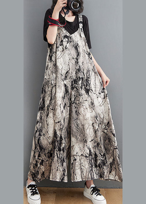 Khaki Pockets Wide Leg Print Fall Romper Outfit