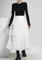 Fine White Asymmetrical wrinkled Tulle Skirts Spring