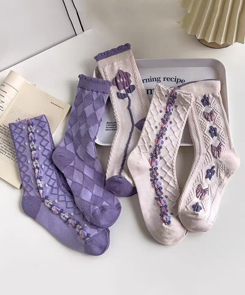 Spring Purple Jacquard Cozy Breathable Crew Socks