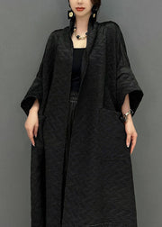 Boutique Black Oversized Pockets Jacquard Silk Trench Coats Fall
