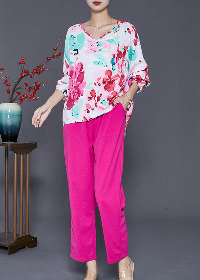 Italian Rose Oversized Print Silk Two Pieces Set Fall