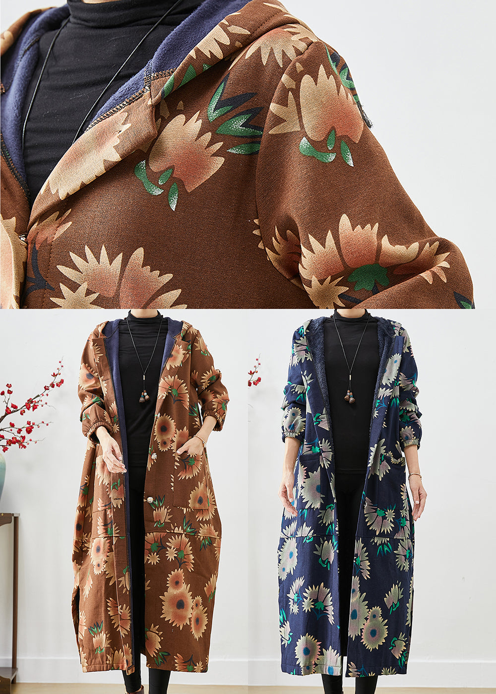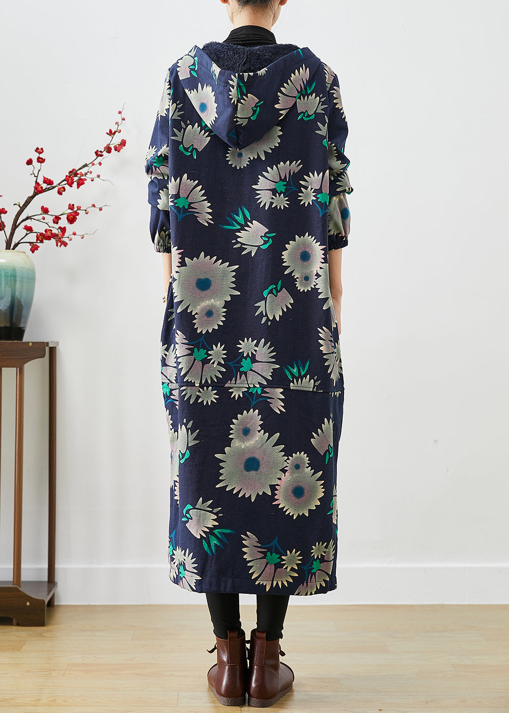 Navy Print Warm Fleece Coat Outwear Oversized Winter