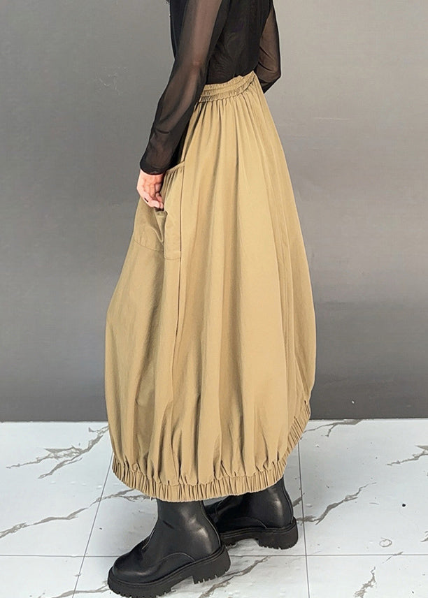 Loose Khaki Pockets Elastic Waist Cotton Skirts Fall