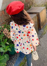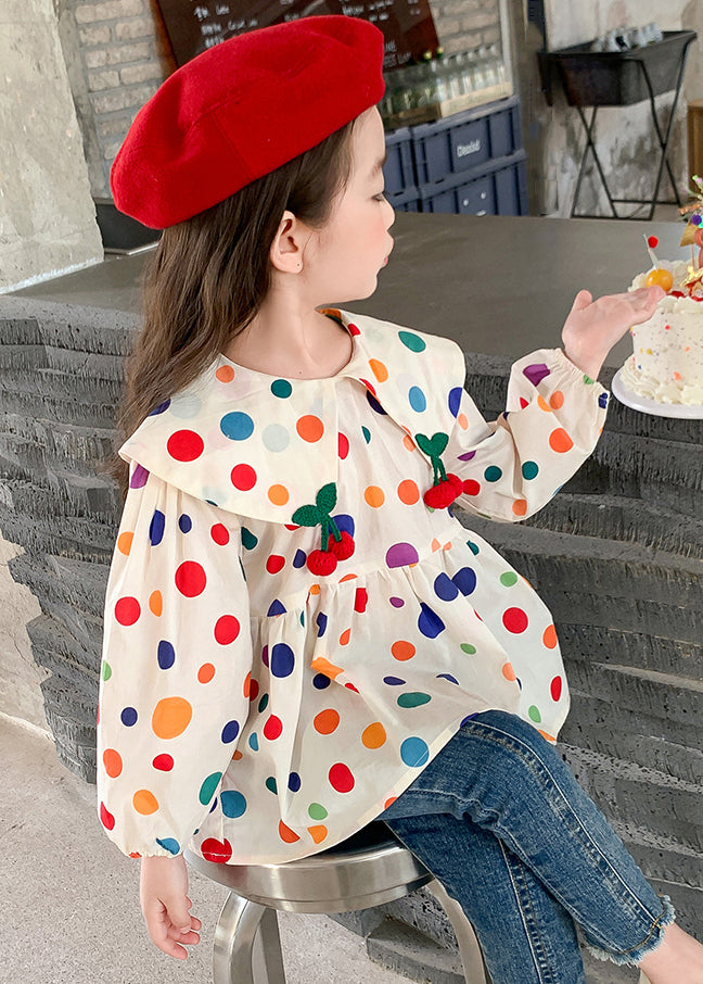 Lovely Peter Pan Collar Dot Cotton Girls Tops Long Sleeve