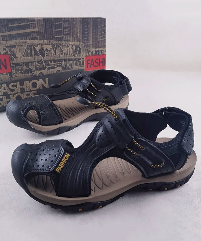 Outdoor Leisure Beach Cowhide Leather Hollow Out Sandals
