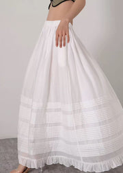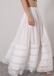 Loose White Ruffled Elastic Waist Silk Cotton Skirts Summer