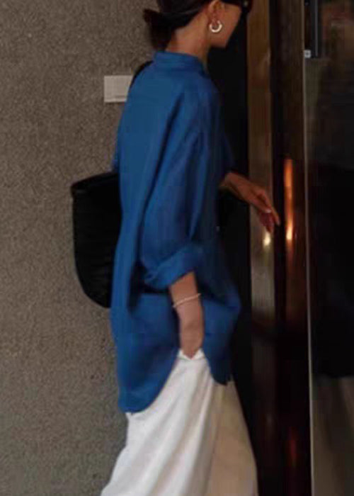 Loose Blue Peter Pan Collar Button Cotton Shirt Fall