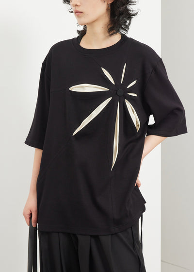 Chic Black Hollow Out Hole Ice Silk Knit Top Half Sleeve