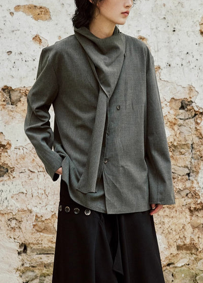 Chinese Style Beige Stand Collar Button Shirt Fall