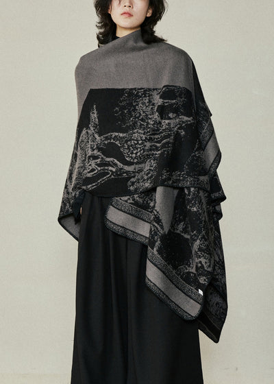 Organic Black V Neck Print Cotton Knit Shawl Coats Fal