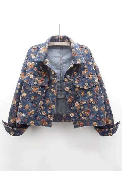 Boutique Blue Peter Pan Collar Print Denim Coats Fall