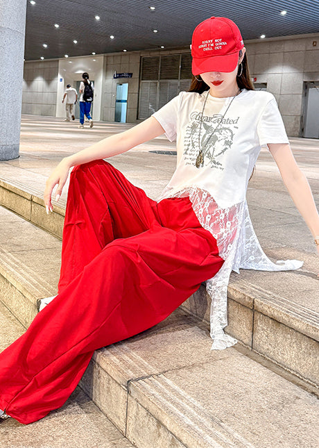 DIY Red Asymmetrical Patchwork Lace Tank Summer
