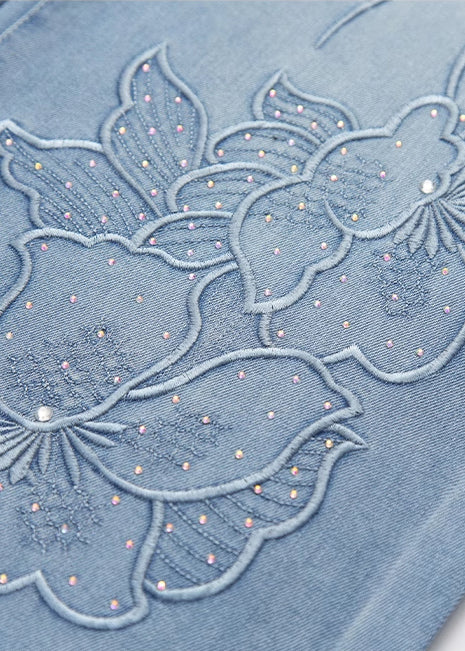 Stylish Light Blue Jacquard Denim Straight Pants Fall