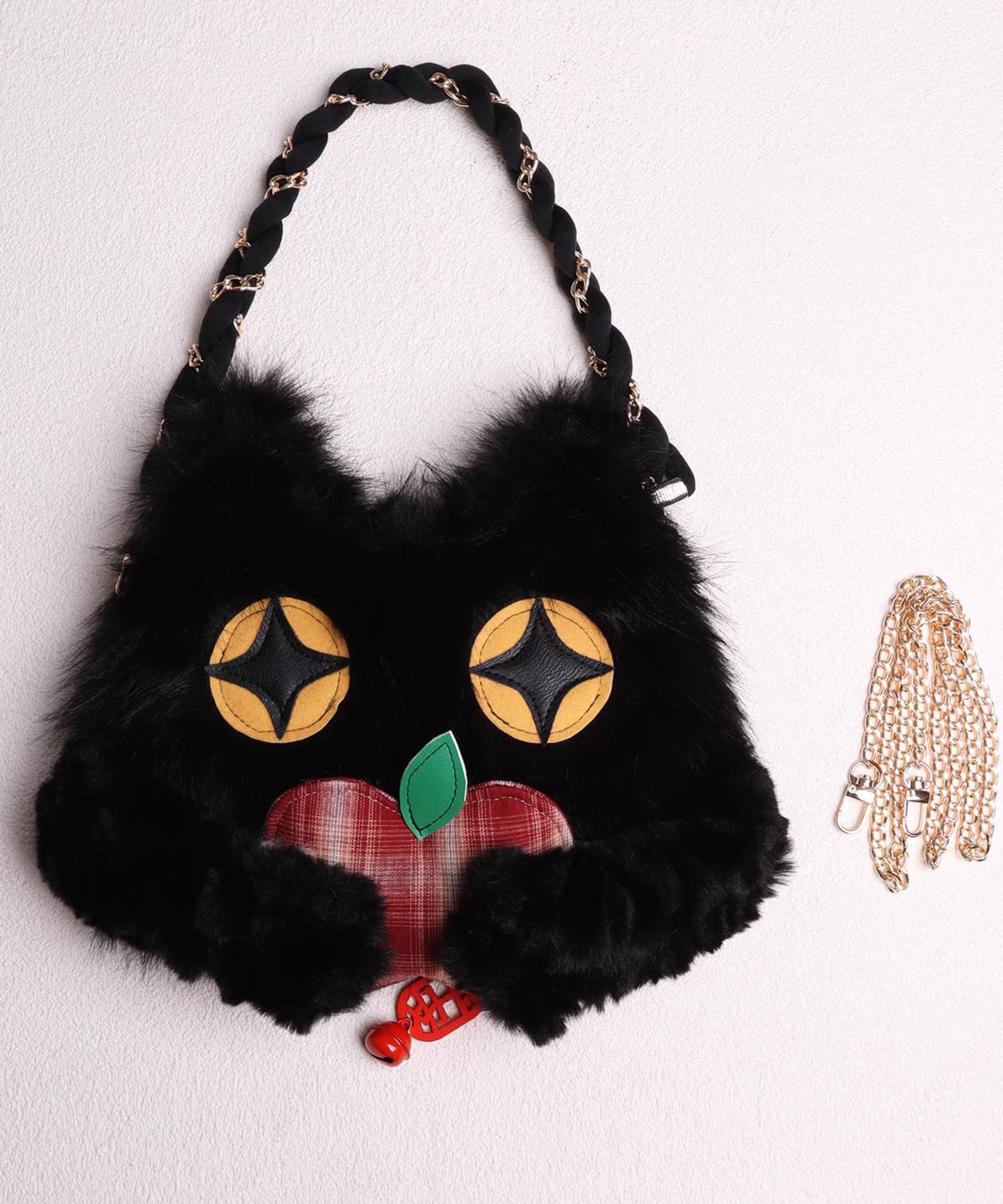 Cute Black Cat Shaped Fuzzy Fur Fluffy Shoulder Bags