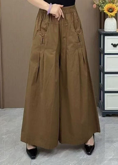 Plus Size Brown Oversized Pockets Wrinkled Cotton Pants Skirts Fall