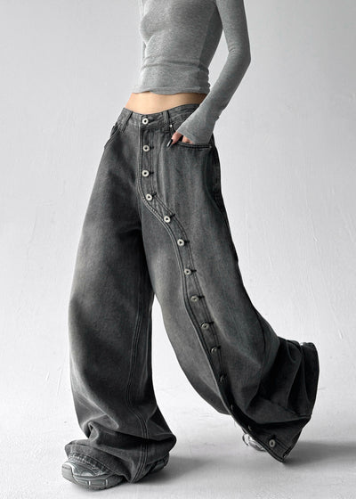 DIY Grey Asymmetrical Rivet Denim Harem Pants Fall