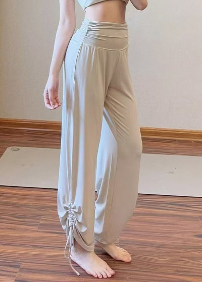 Art White Asymmetrical Draping Spandex Bell-bottom Trousers Fall
