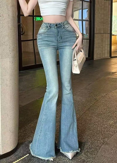 Stylish Blue Tummy Control Denim Bell-bottom Trousers Fall