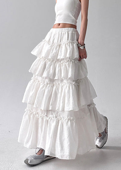 Women White Layered Ruffled Cotton Holiday Skirt Fall