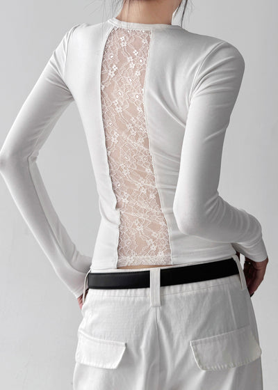Black Patchwork Lace Blouse Top Hollow Out Fall