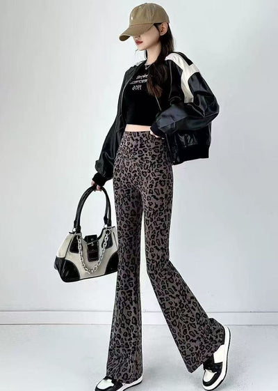 Silm Fit Brown Leopard Print Tummy Control Flared Trousers Fall