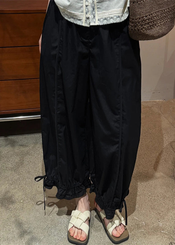 New Purple Cinched Elastic Waist Cotton Crop Pants Trousers Summer