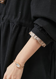 Plus Size Black Drawstring Cotton Fake Two Piece Dresses Spring