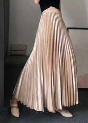 Modern Gold Elastic Waist Wrinkled Satin Maxi Skirt