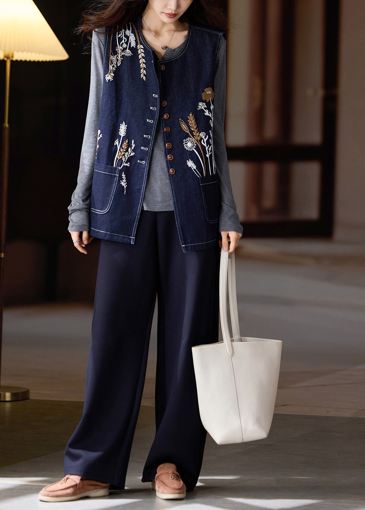 DIY Navy Oversized Embroideried Denim Vests Fall