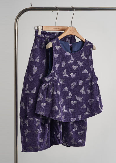 Art Purple Embroidered Butterfly Silk Velvet Two-Piece Set Sleeveless