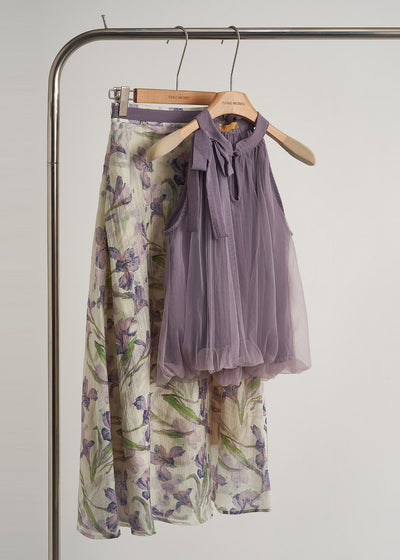 Beautiful Lavender Cold Shoulder Print Tulle Two Pieces Set Summer
