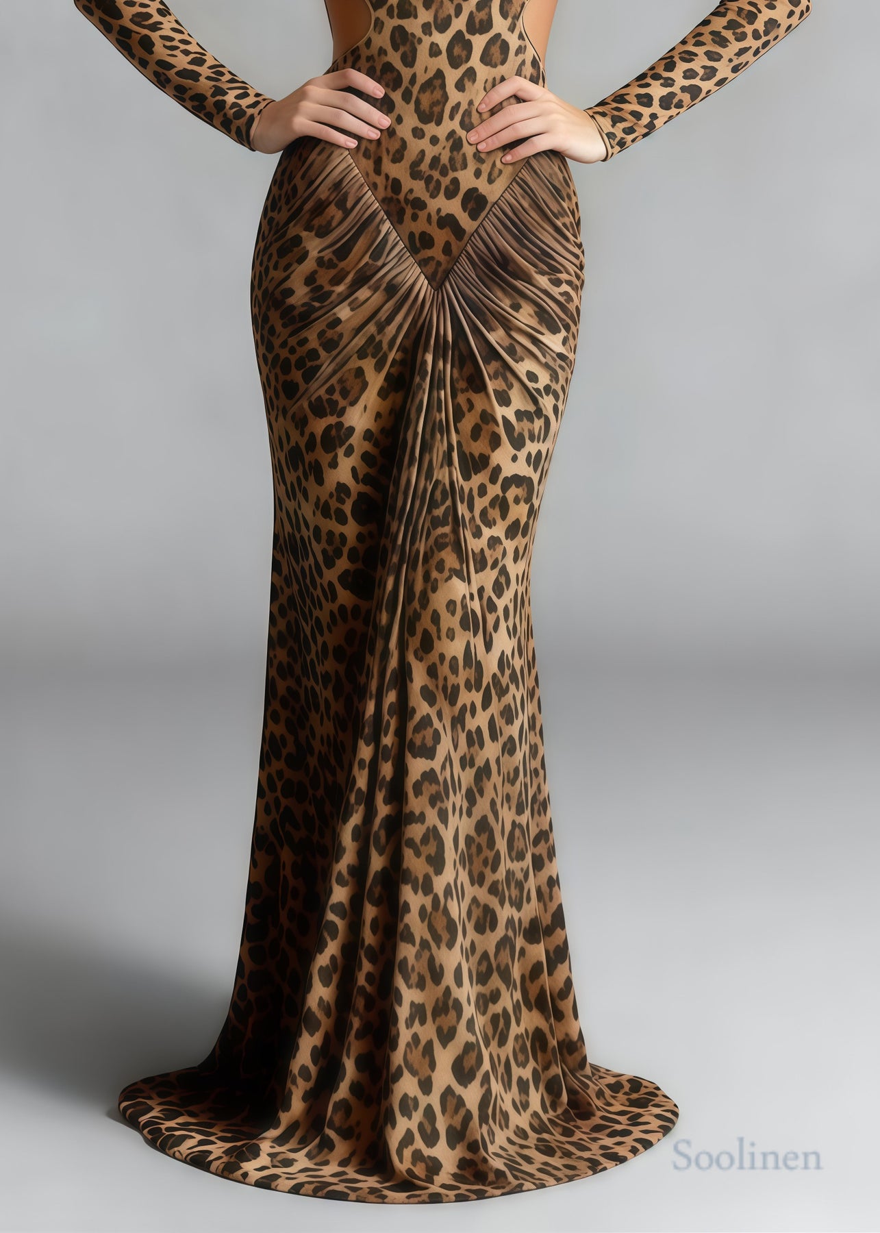 Silm Fit Leopard Print Backless Wrinkled Cotton Party Dress Spring