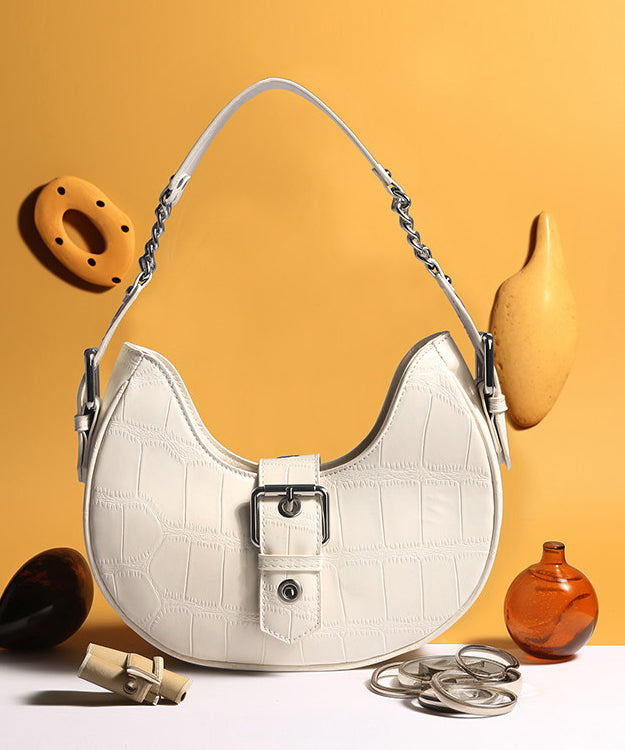 Beautiful White Jacquard Solid Durable Faux Leather Saddle Bag