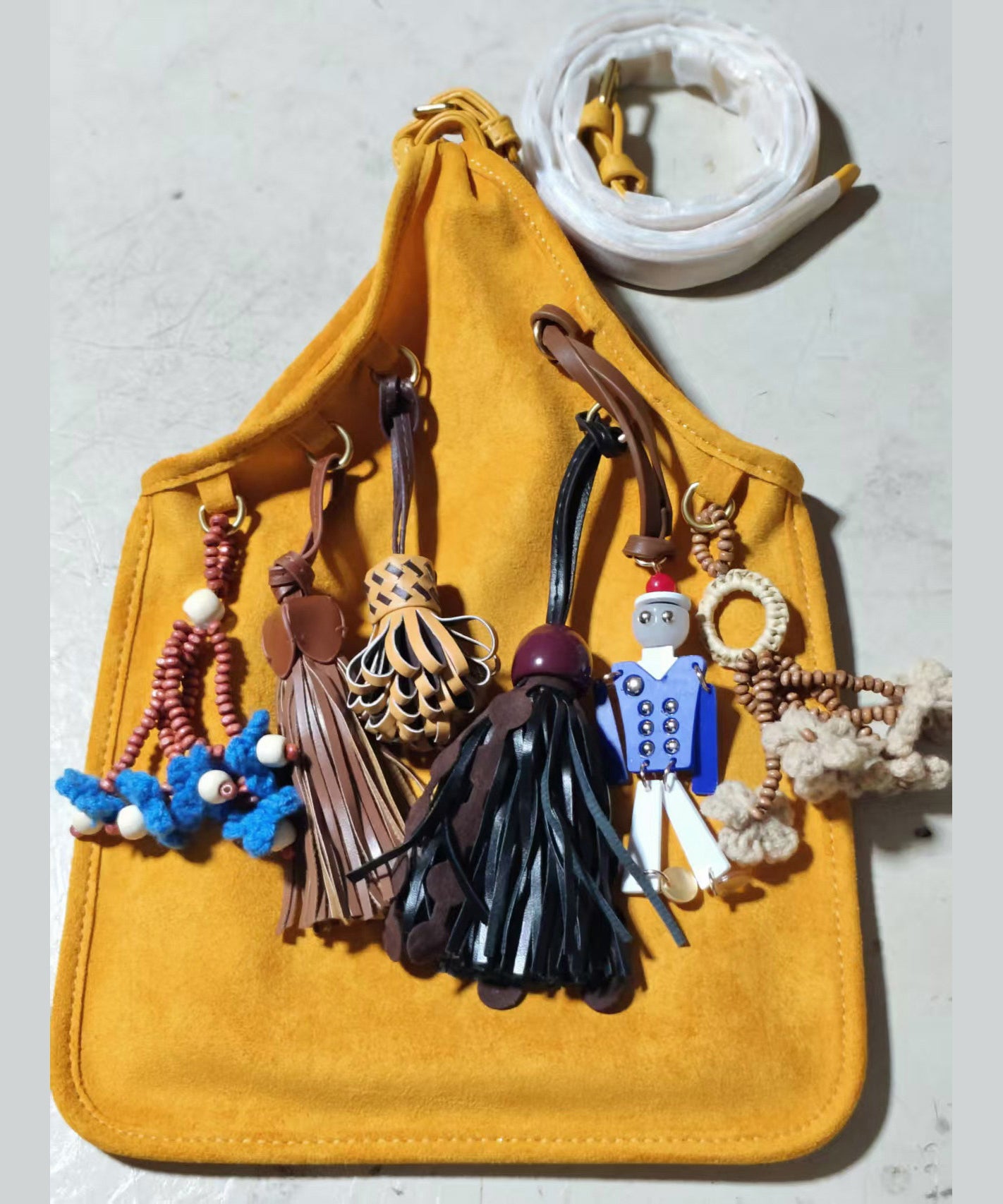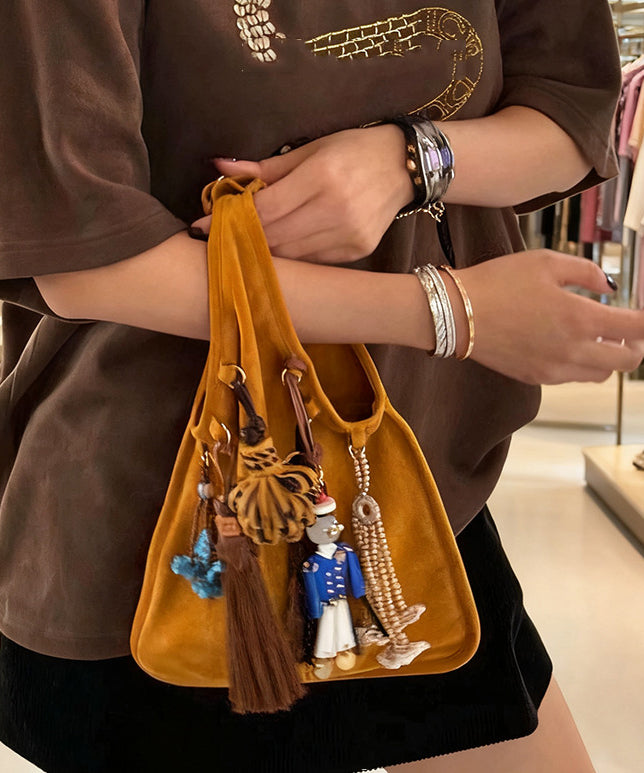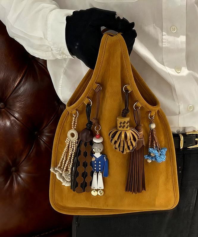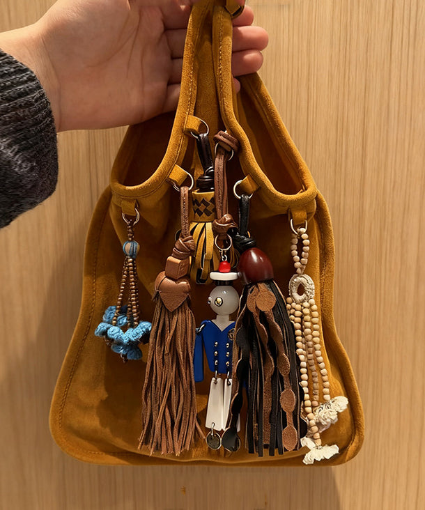 National Style Khaki Tasseled Fine Suede Tote Handbag