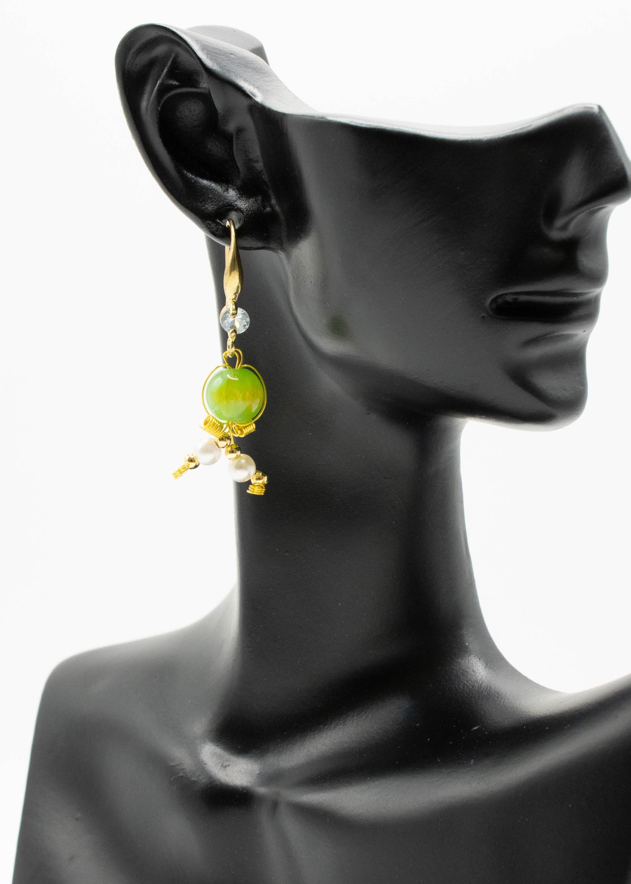 Women Grass Green Fine Crystal Original Design Drop Earrings
