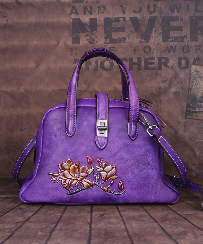 Schöne lila geprägte Paitings Kalbsleder Satchel Handtasche